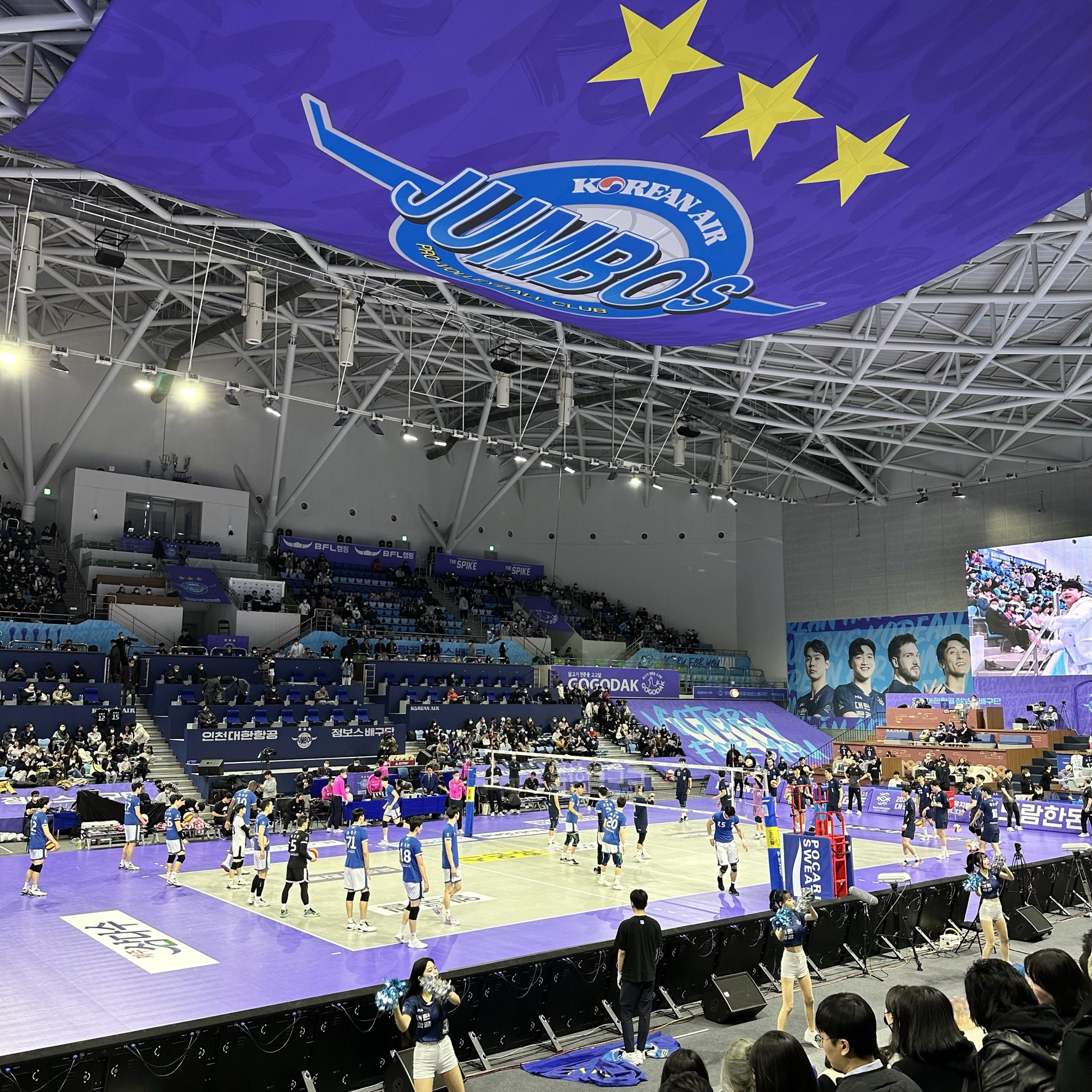 티켓확인을 하고 들어가면 점보스는 포토카드 찍는 곳도 있었고, 배구 선수 판넬들도 서있었다. 경기가 곧 시작이라 호다닥 구경하고 들어왔다. 안으로 들어오는건 그냥 들어올 수 있었고, 구역을 찾아가서는 티켓 확인을 하고 구역확인도 함께 해주어서 금방 자리는 찾을 수 있었다. 생각했던 것 보다 더 가까운 자리였고 선수들도 잘 보였다.